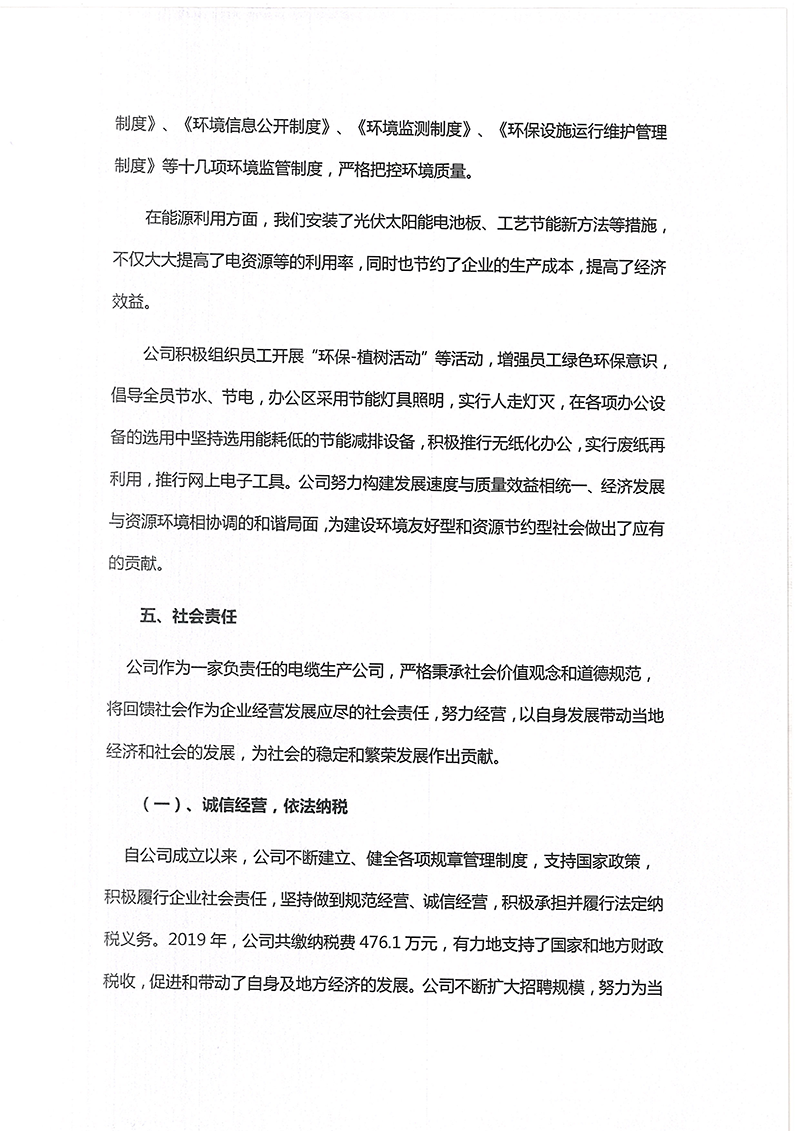 河北華倫線纜有限公司2019年度社會責任報告