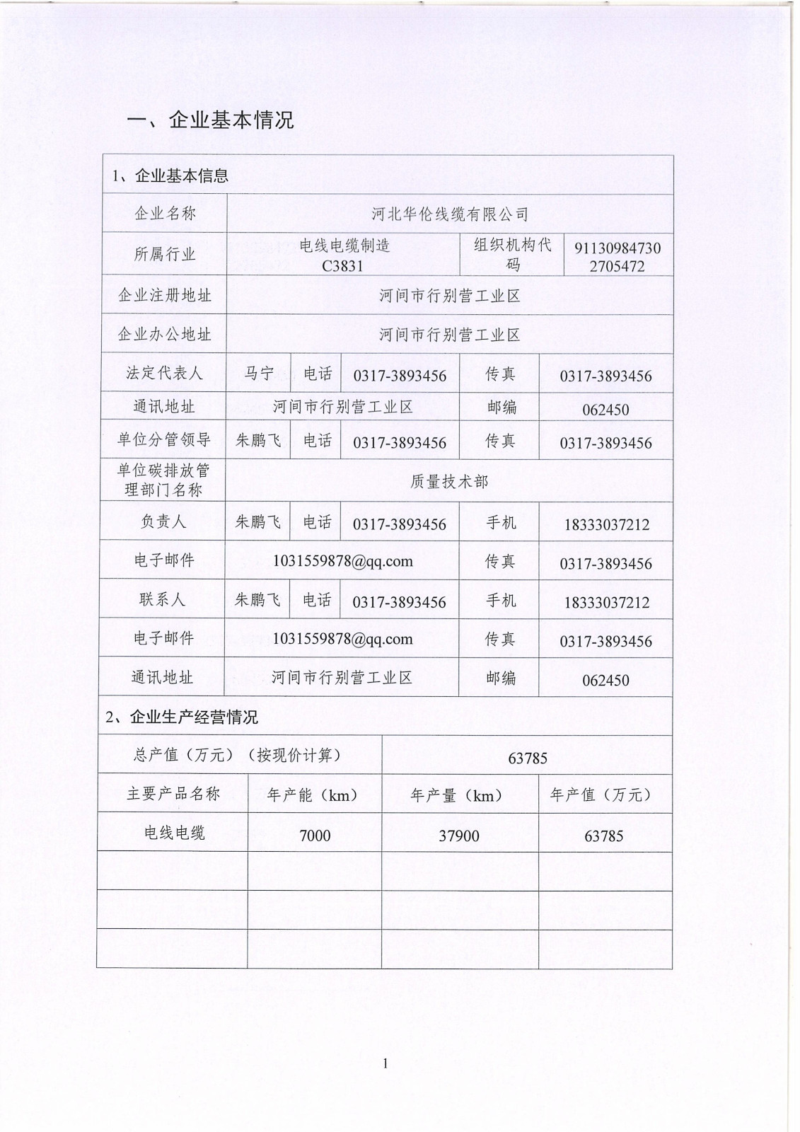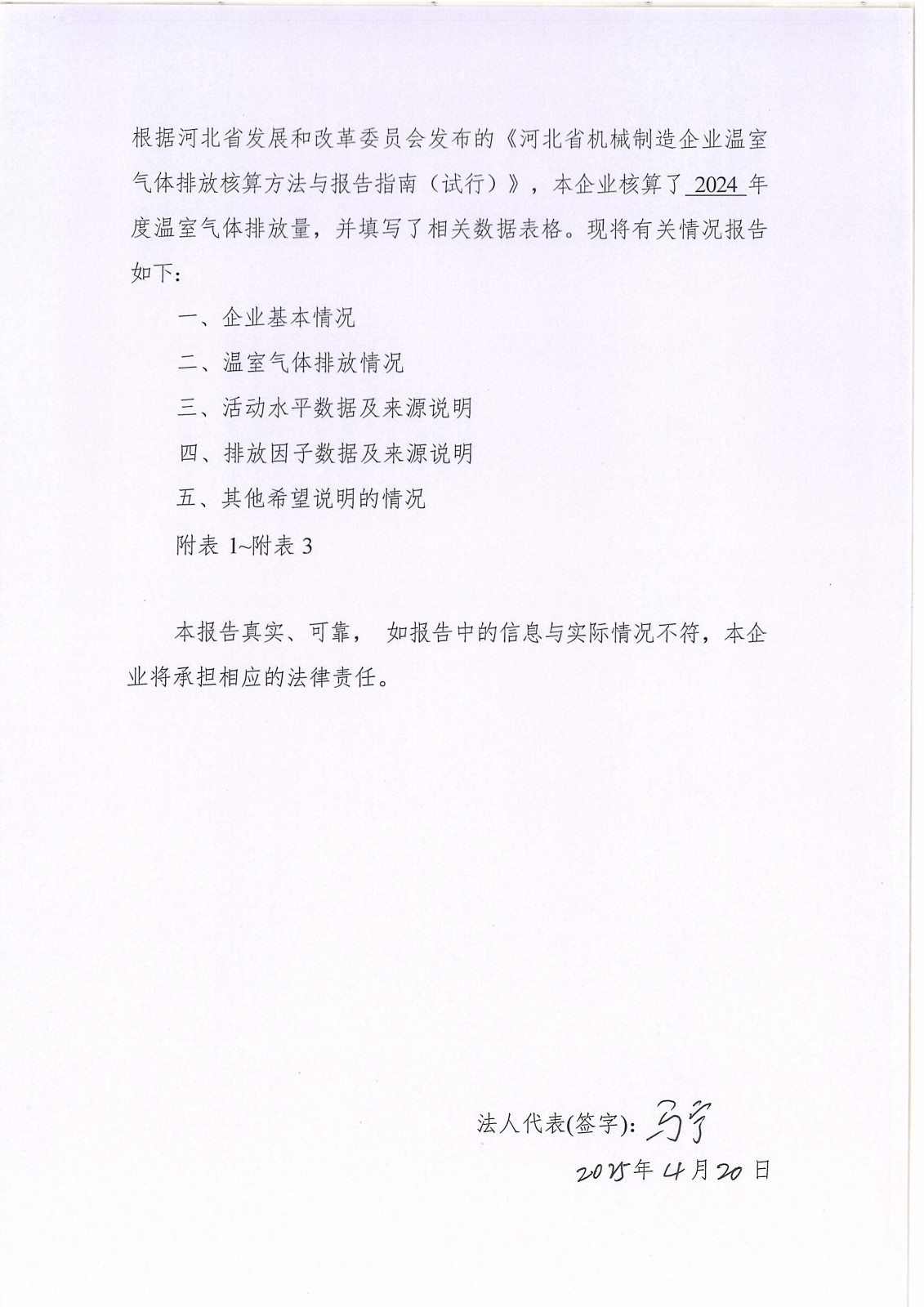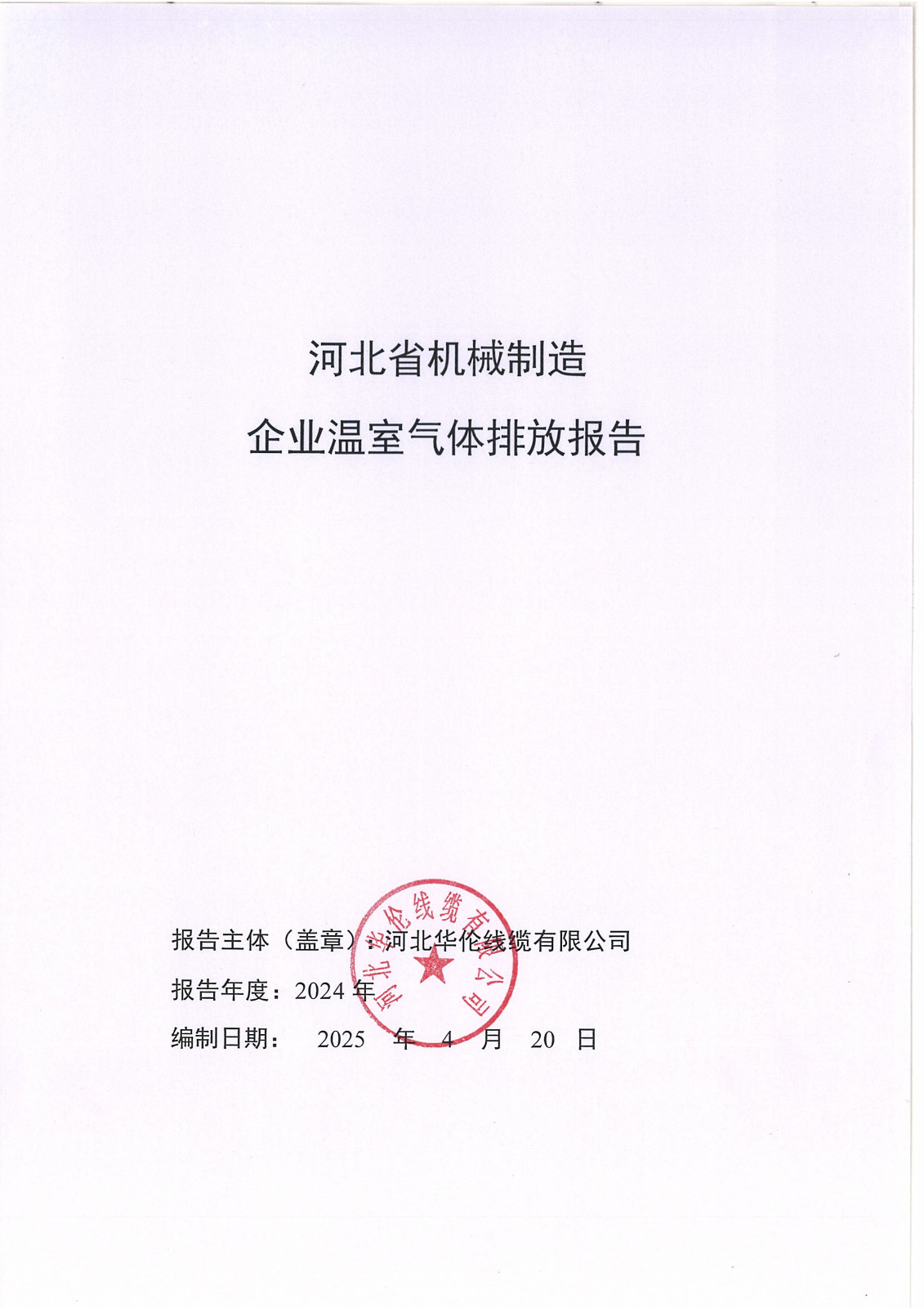 河北華倫線纜有限公司2024年溫室氣體排放報告及改善計劃