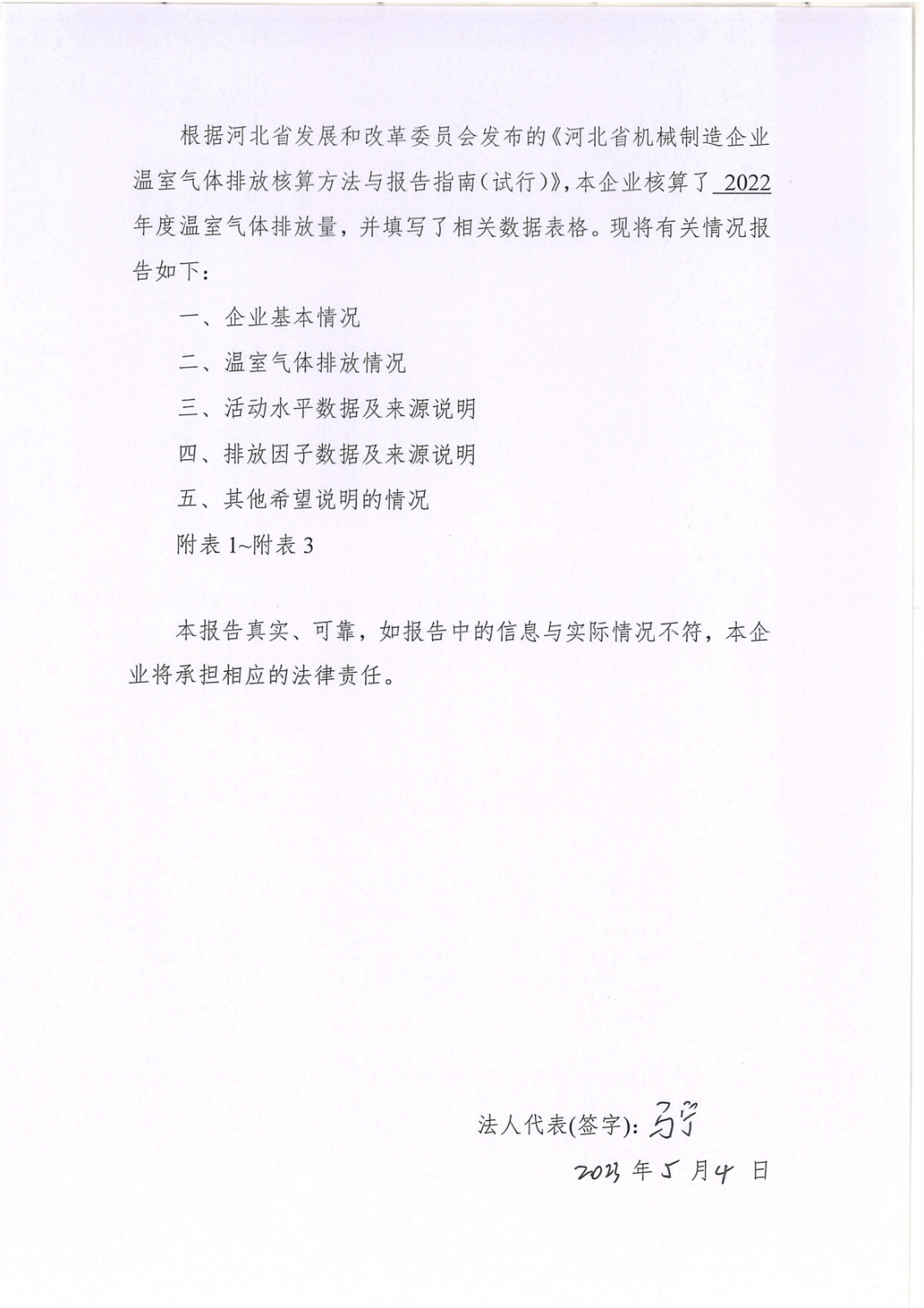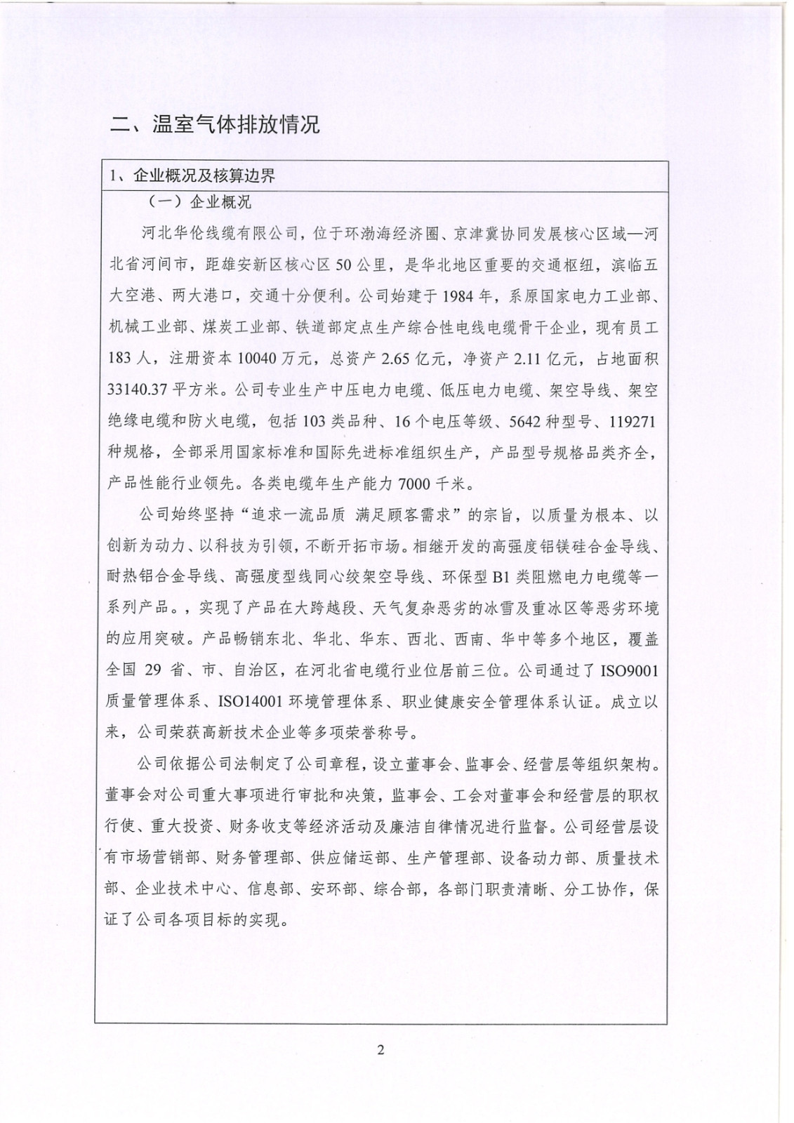 河北華倫線纜有限公司2022年溫室氣體排放報(bào)告及改善計(jì)劃